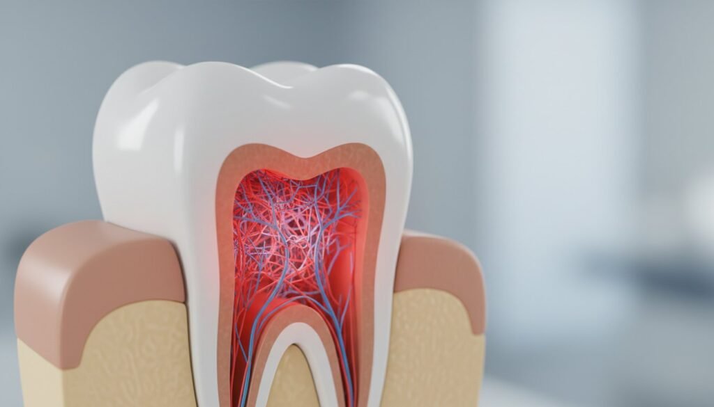 When bacteria from deep decay or trauma reaches this delicate inner tissue, it can become irritated and inflamed. This condition is known as pulpitis. To understand the specifics of what is pulpitis, it’s crucial to consider the tooth’s unique structure. Unlike inflammation in your skin where swelling can expand outwards, the pulp is encased within the rigid, unyielding walls of the tooth. As the pulp swells, intense pressure builds up inside this confined space. This pressure is exerted directly onto the sensitive nerve endings, which is the direct cause of the throbbing, persistent, and often excruciating pain that signals a serious problem.
